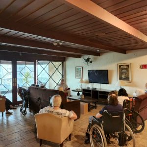O lar atende idosos independentes ou dependentes, incluindo casos de Alzheimer e Parkinson, com cuidadores qualificados auxiliando em mobilidade, alimentação e companhia